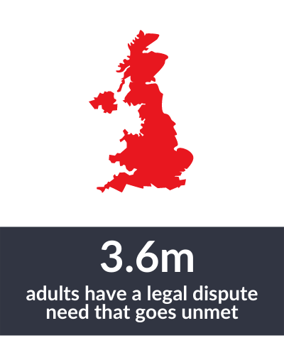 In the UK every year approximately 3.6 million adults have a legal need involving a dispute that goes unmet, while half of small businesses are forced to handle legal issues without expert support. The biggest factor in the decision not to find legal help is cost – meaning the public view lawyers as too expensive.