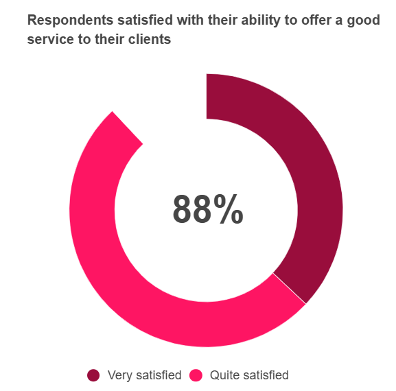 Most of the lawyers included in our survey felt as if their law firms enabled them to provide a good service to their clients – 88% said they were quite or very satisfied.