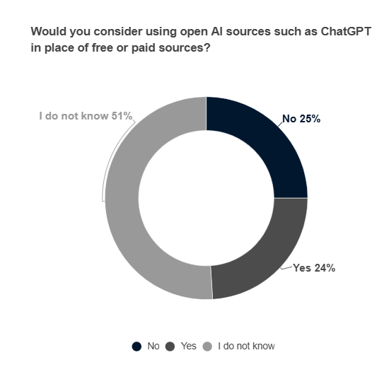 Fewer than a quarter (24%) of respondents said they would consider using free generative AI tools for legal sources