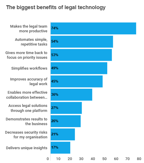 74% of respondents said increasing productivity is the biggest benefit of legal technology