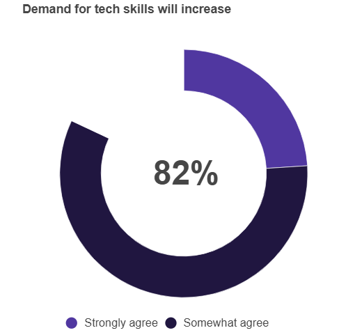 We asked our respondents where they see the function of the in-house legal department in the next one to three years, and 82% agreed demand for technology skills will increase in their legal teams.