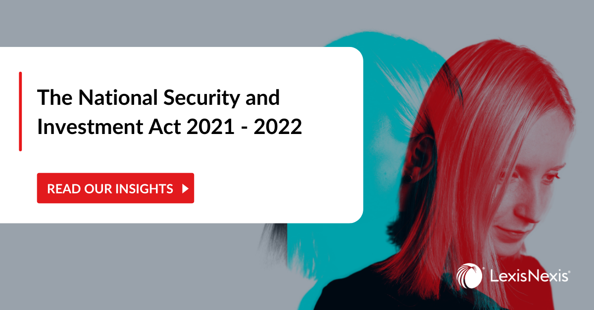 The act gives Government the power to review and intervene in a wide range of investments in businesses that are active in the UK or acquisitions of related assets, with the ultimate objective of preventing transactions that could harm the UK’s national security.