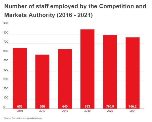 The number of staff employed by the CMA has risen in recent years to meet heightened workloads