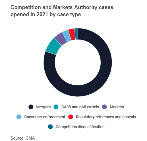 While the number of CMA cases opened in 2021 fell from 87 to 64 when compared to 2020, the authority has made headlines with a number of high profile cases and fines. And in April 2022, the Government made it clear that the authority will be given additional investigative and enforcement powers.