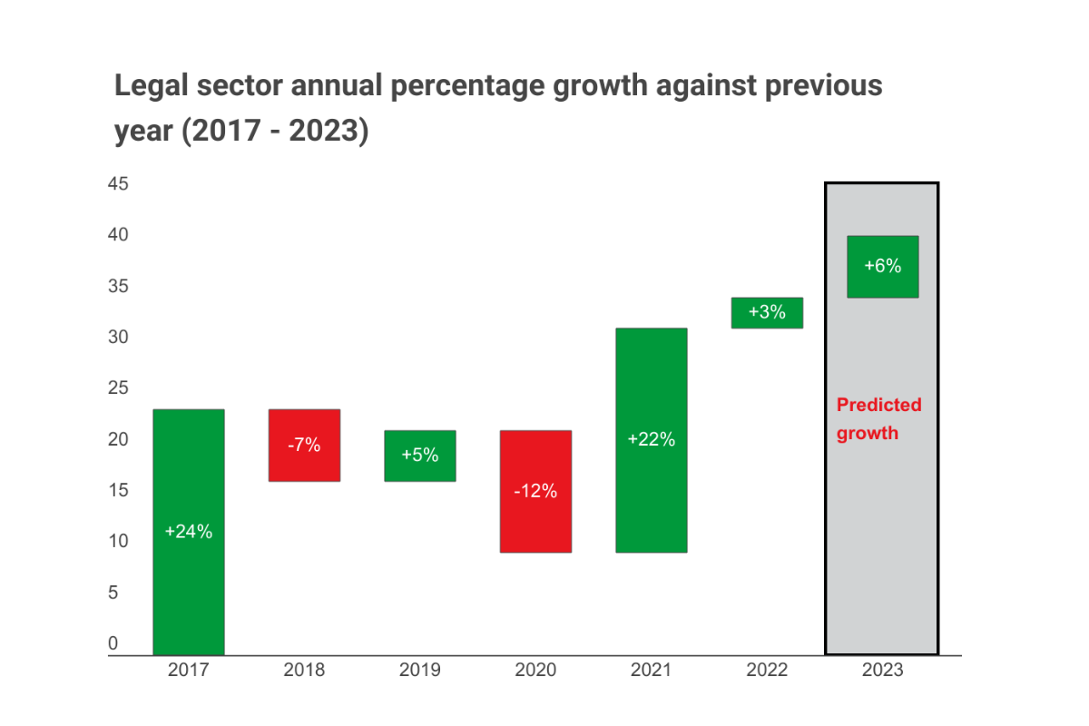 Demand for legal expertise is predicted to grow by +6% in 2023