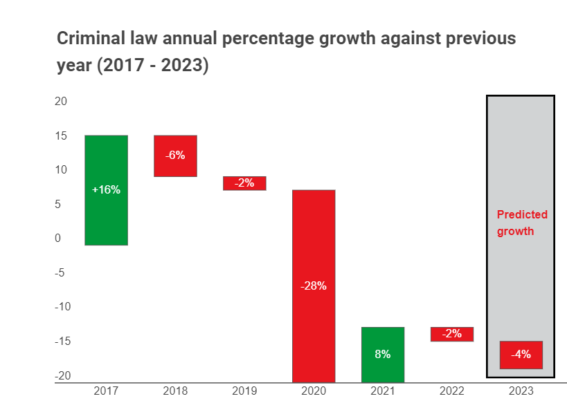 Criminal law is predicted to generate by 4% less work in 2023 than in 2022