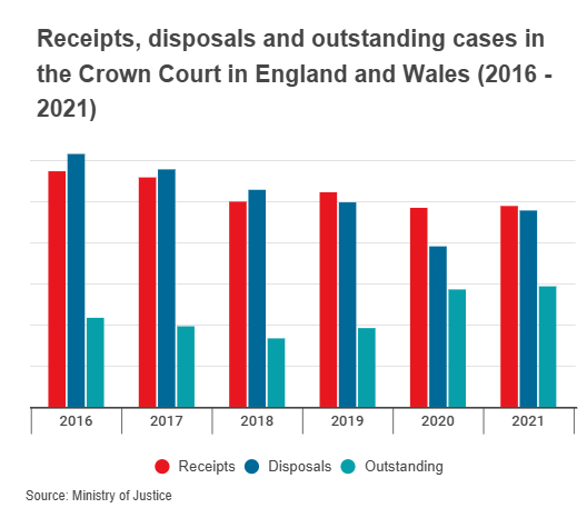 The length of time between offence and completion of a criminal case has risen in each year since 2010, and COVID-19 only escalated this, with both the magistrates' court and Crown Court having an ongoing backlog of cases.
