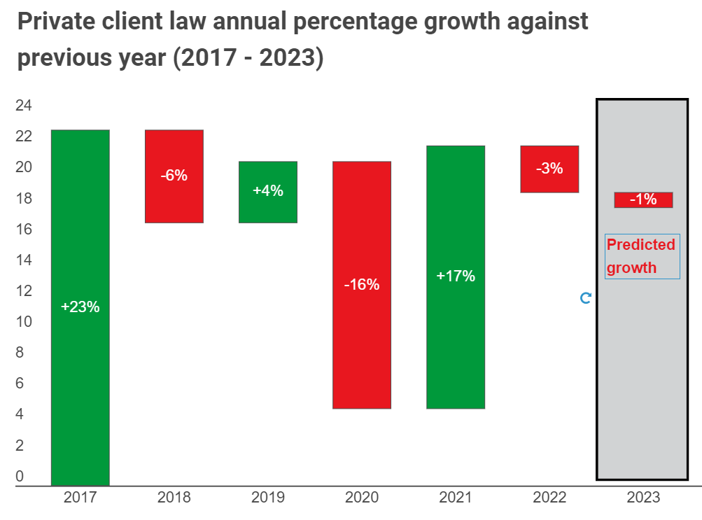 Private client law is predicted to generate -1% less work in 2023 than in 2022