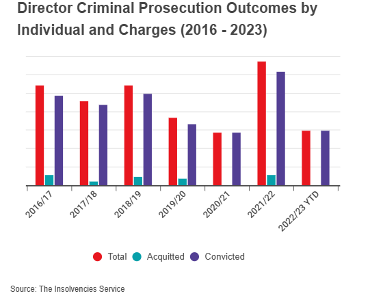 When looking at figures for 2021 it is clear that the number of directors being convicted jumped in 2021-22 - sitting 123. This is a considerable increase from 2020-21's 57.
