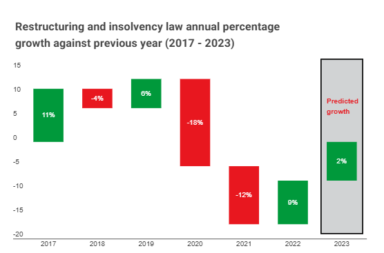 It revealed that restructuring and insolvency law is projected to experience positive growth in 2023.
