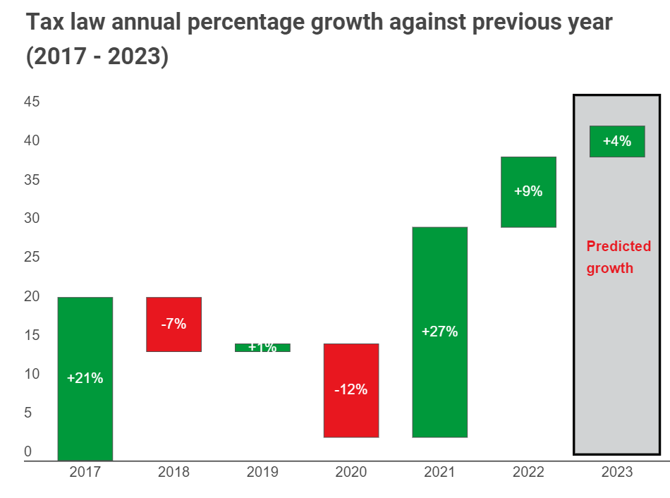 Despite the economic environment, tax law is predicted to grow in demand in 2023.