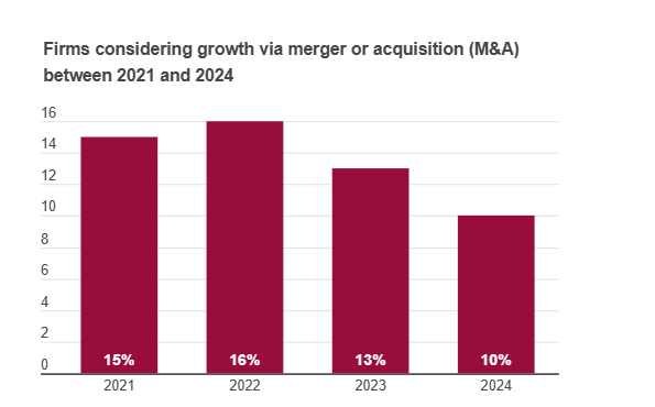 The latest LexisNexis Bellwether 2024 survey, which polled over 250 small- and medium-sized legal practices, found only one in 10 are open to M&A offers.
