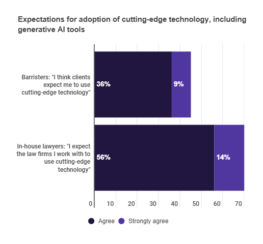 45% of barristers believe their clients will expect cutting edge technology such as generative AI tools.