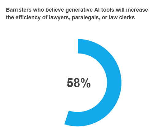 58% of barristers agreed generative AI will increase efficiency.