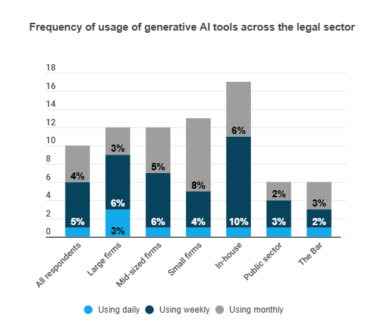 6% of barristers currently use open source generative AI tools at least once a month (in-house lawyers are the biggest users).