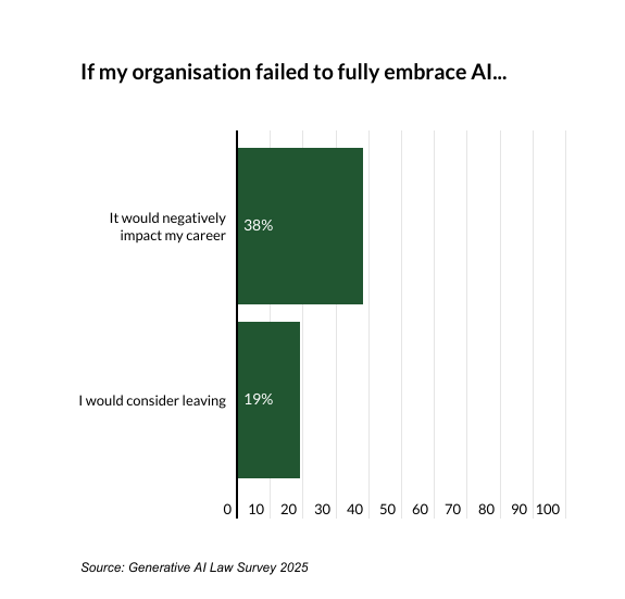 19% of in-house lawyers said they would consider leaving if their organisation didn't adequately invest in AI