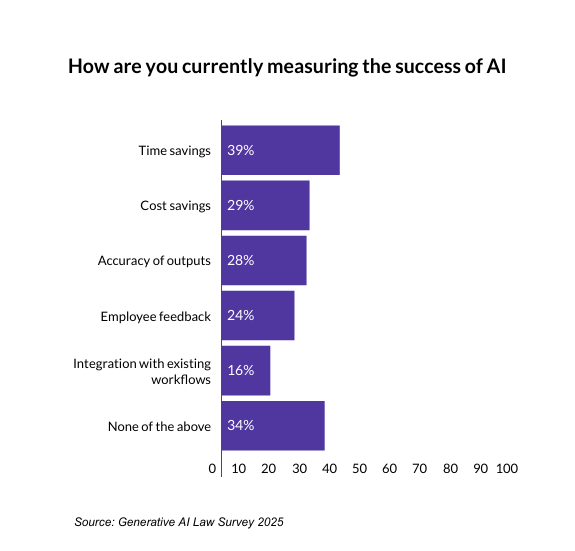 One senior corporate counsel said their organisation measures the effectiveness of AI tools by evaluating their impact on efficiency, accuracy, and compliance.
