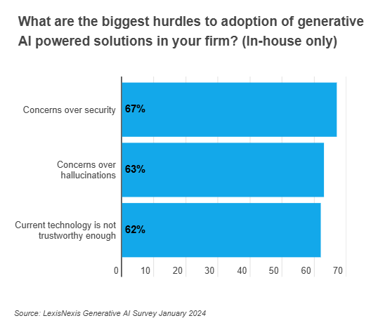 "I suspect the number one reason is accuracy and fear of having the wrong advice, particularly heightened by issues with public access generative AI," says Smith from LexisNexis.