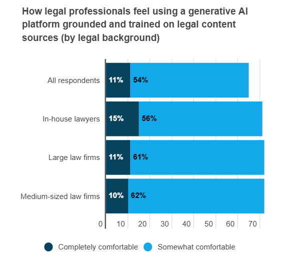 Almost three-quarters of in-house lawyers would be more comfortable using generative AI tools grounded on legal sources.