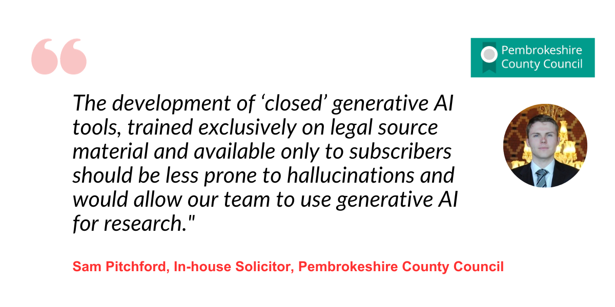Samuel Pitchford, a solicitor for Pembrokeshire County Council in Wales, is excited to use generative AI for legal research purposes in the near future.