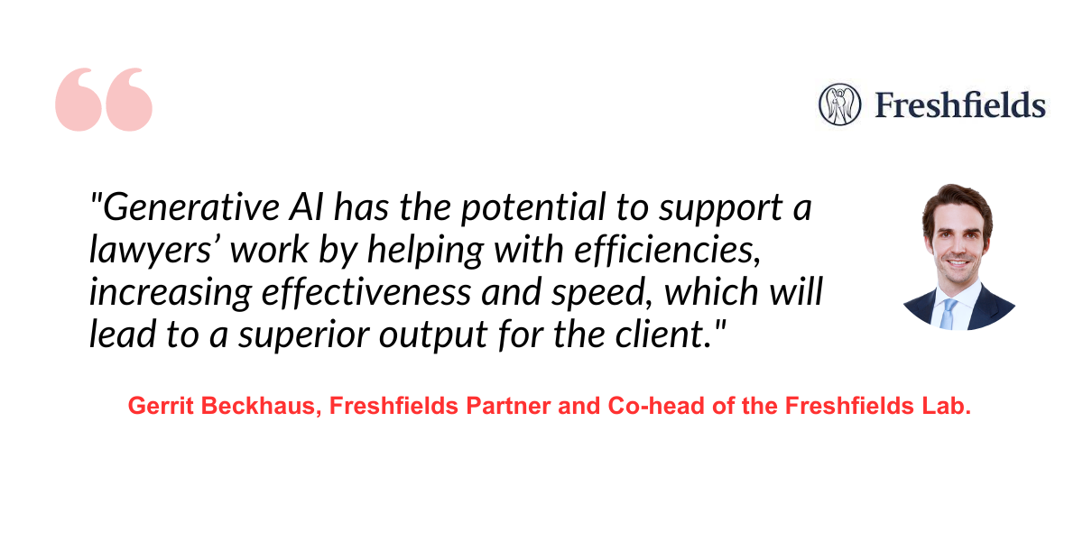 Generative AI will fundamentally change the way we work in the legal industry, says Dr. Gerrit Beckhaus, Freshfields Partner and Co-head of the Freshfields Lab.