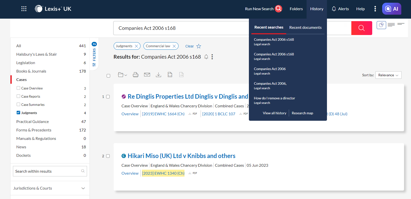 Lexis+ UK offers two powerful features, "History" and "Research Maps," that enhance your legal research experience by providing valuable insights and context.
