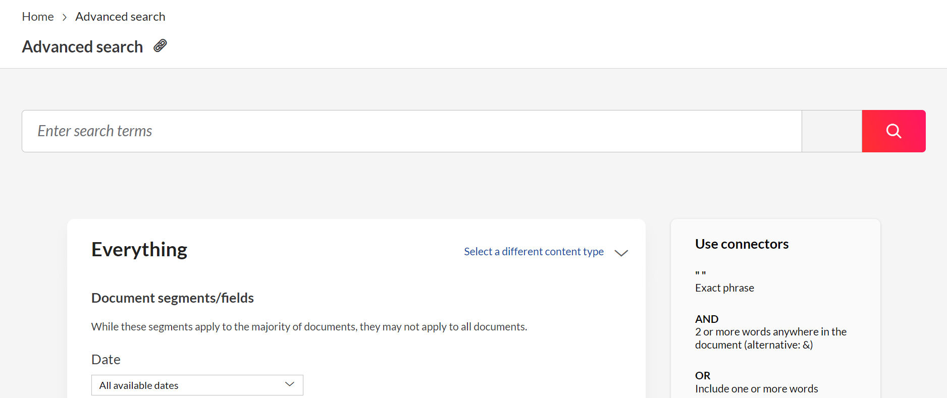 Accessing the advanced search feature