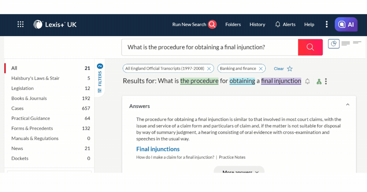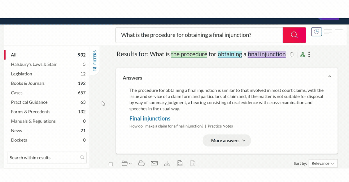 After running your initial search, Lexis+ UK provides a range of filters that allow you to narrow your results based on various criteria, such as practice areas, topics, jurisdictions, courts, and timelines. This targeted filtering can help you quickly zero in on the most relevant information, reducing the time spent sifting through irrelevant results.