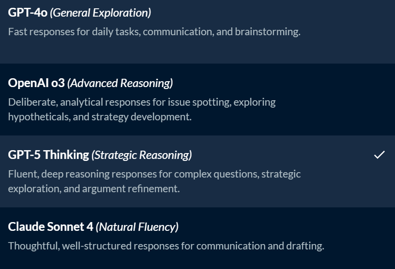Switching between AI tasks is not about automation for its own sake. It is about maintaining control. Legal professionals decide when legal authority is required and when general analysis is sufficient.